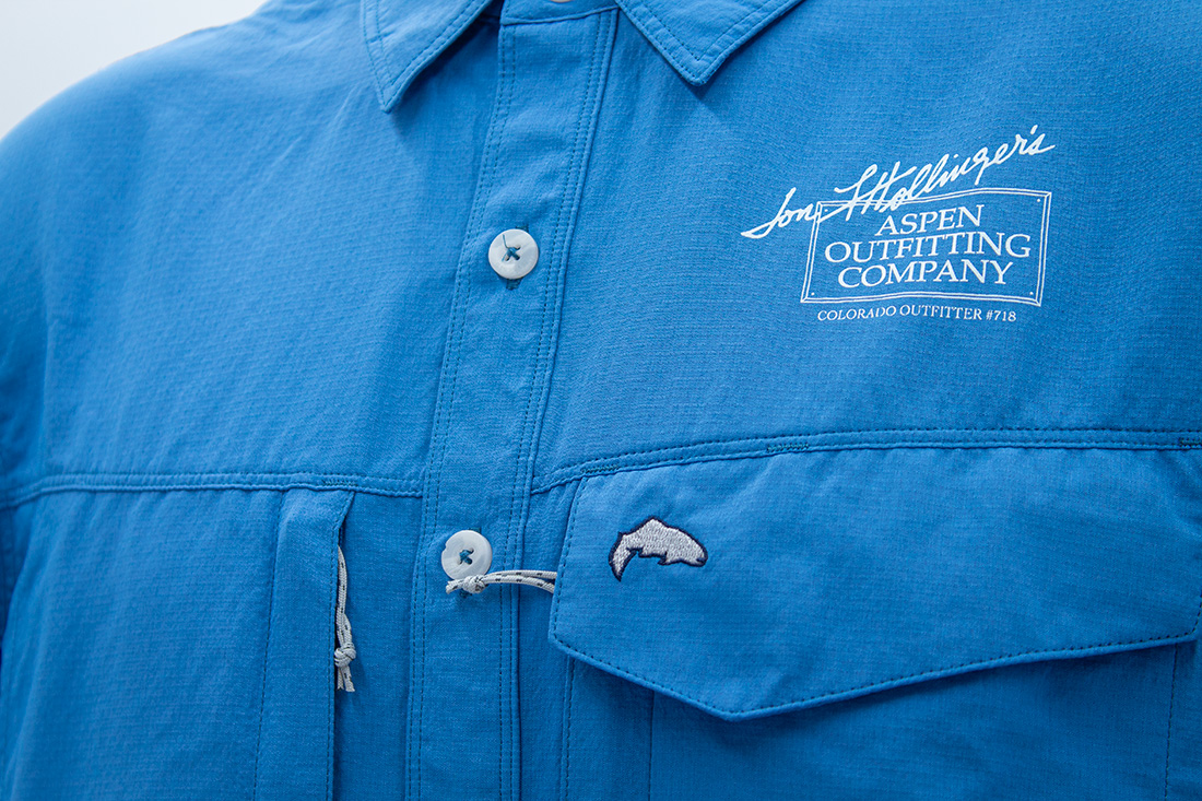 Jon Hollinger runs Aspen Outfitters, a guide service based in Aspen Co. Known for their big successes out on the river, they make sure their guides are looking slick while helping clients land trout. Printed on a variety of Simms and Free Fly Apparel in a array of waterbased and performance inks. Quality prints for premium gear.